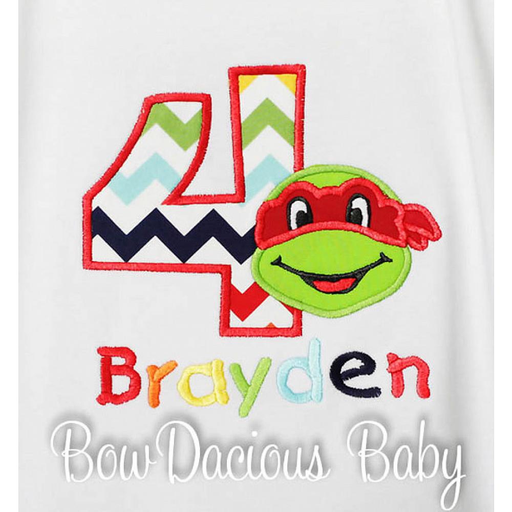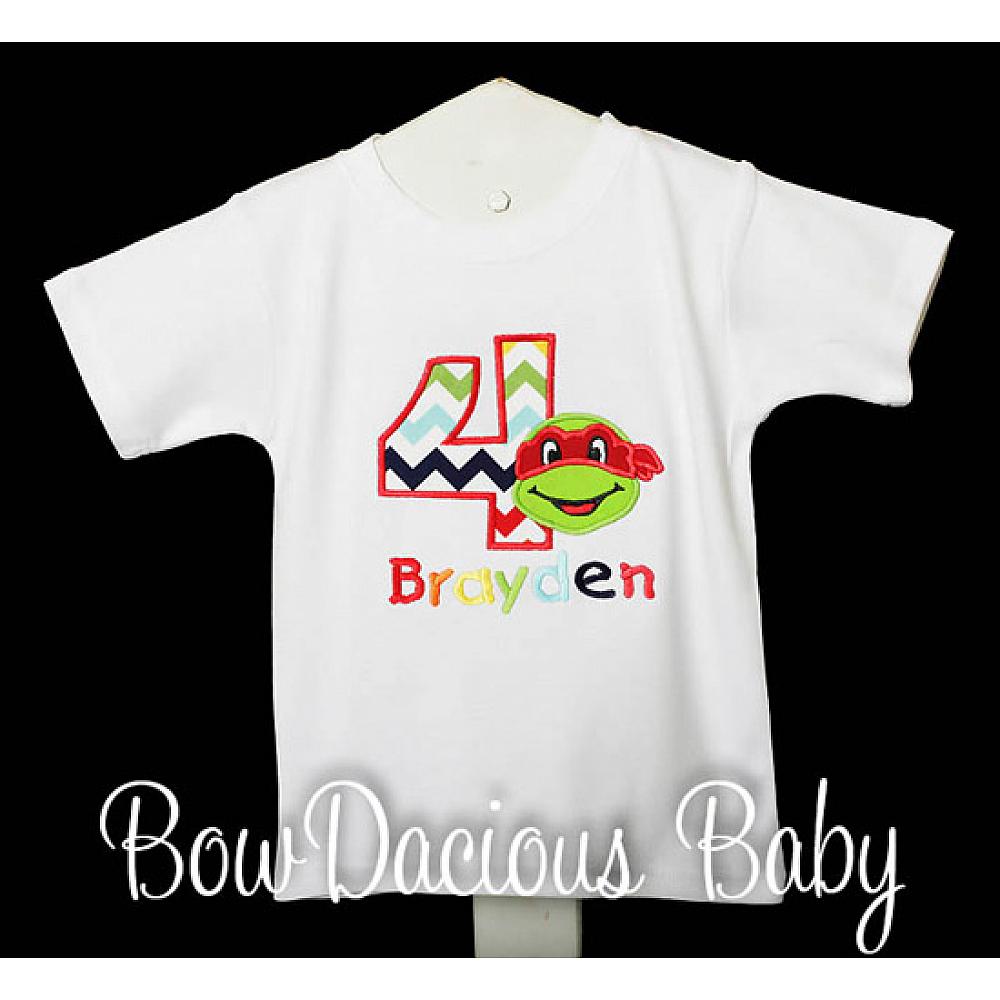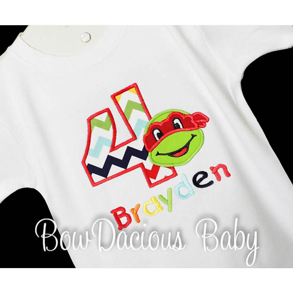 Personalized Ninja Turtle birthday shirt or onesie. Custom made to your specifications. You pick the fabric, font, and thread colors. Any Age. Add shorts, pants, a coordinating bib or diaper cover to complete the outfit.