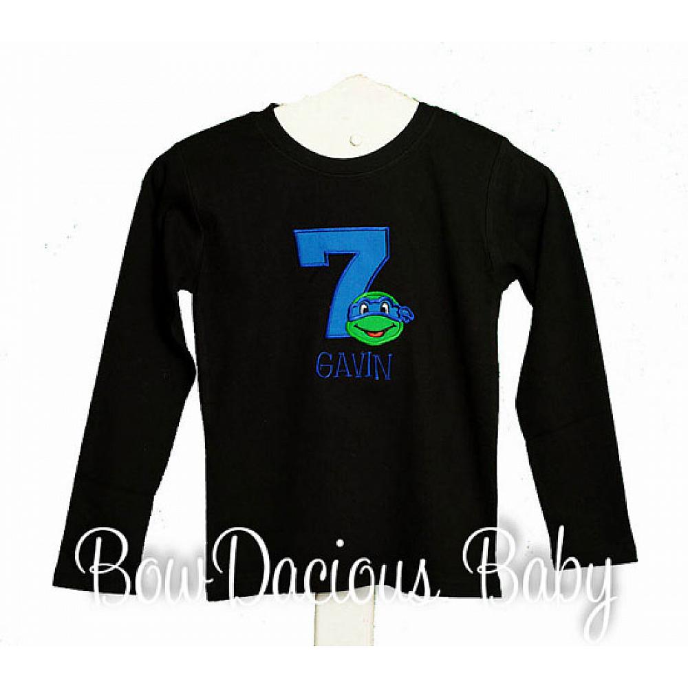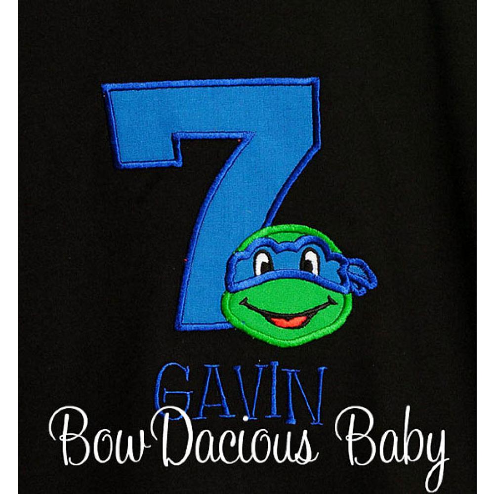 Personalized Ninja Turtle birthday shirt or onesie. Custom made to your specifications. You pick the fabric, font, and thread colors. Any Age. Add shorts, pants, a coordinating bib or diaper cover to complete the outfit.