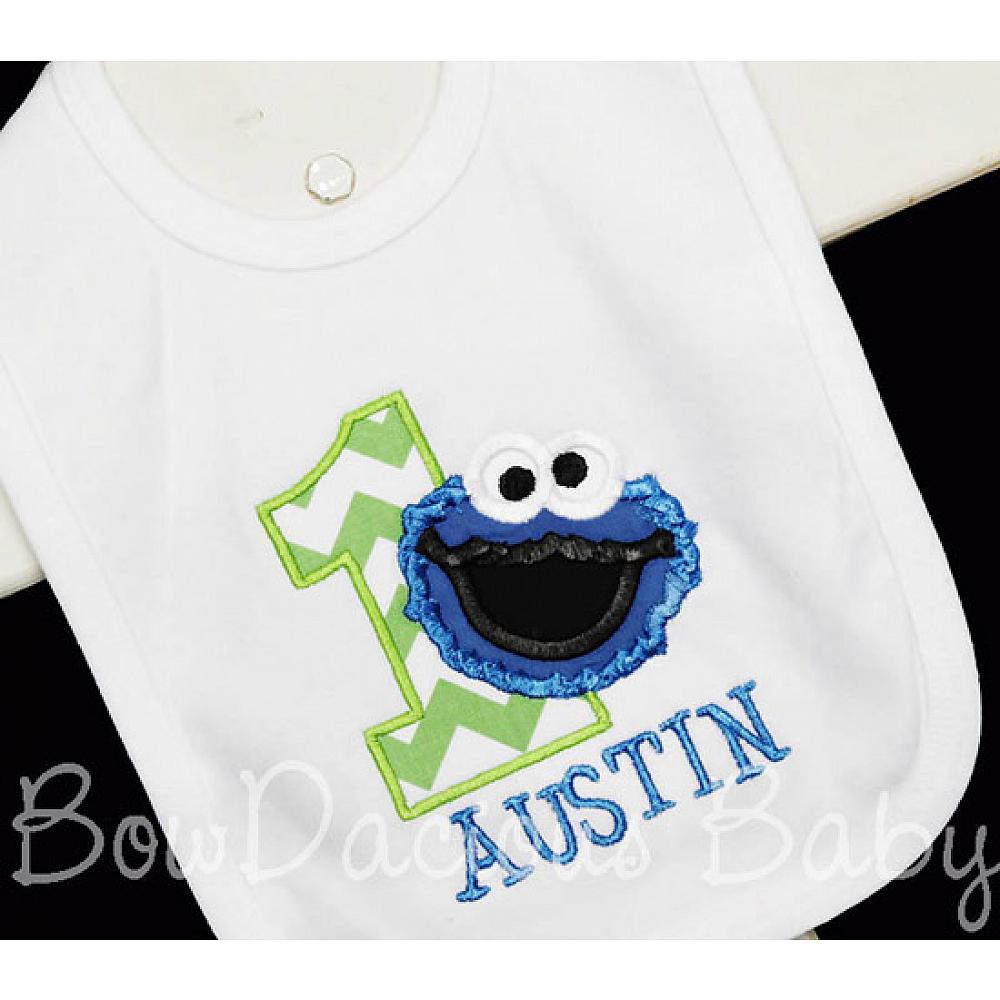 Cookie Monster birthday bib. Custom made to your specifications. You pick the fabric, font, and thread colors. Any Age. Add shorts, pants, a coordinating bib or diaper cover to complete the outfit.