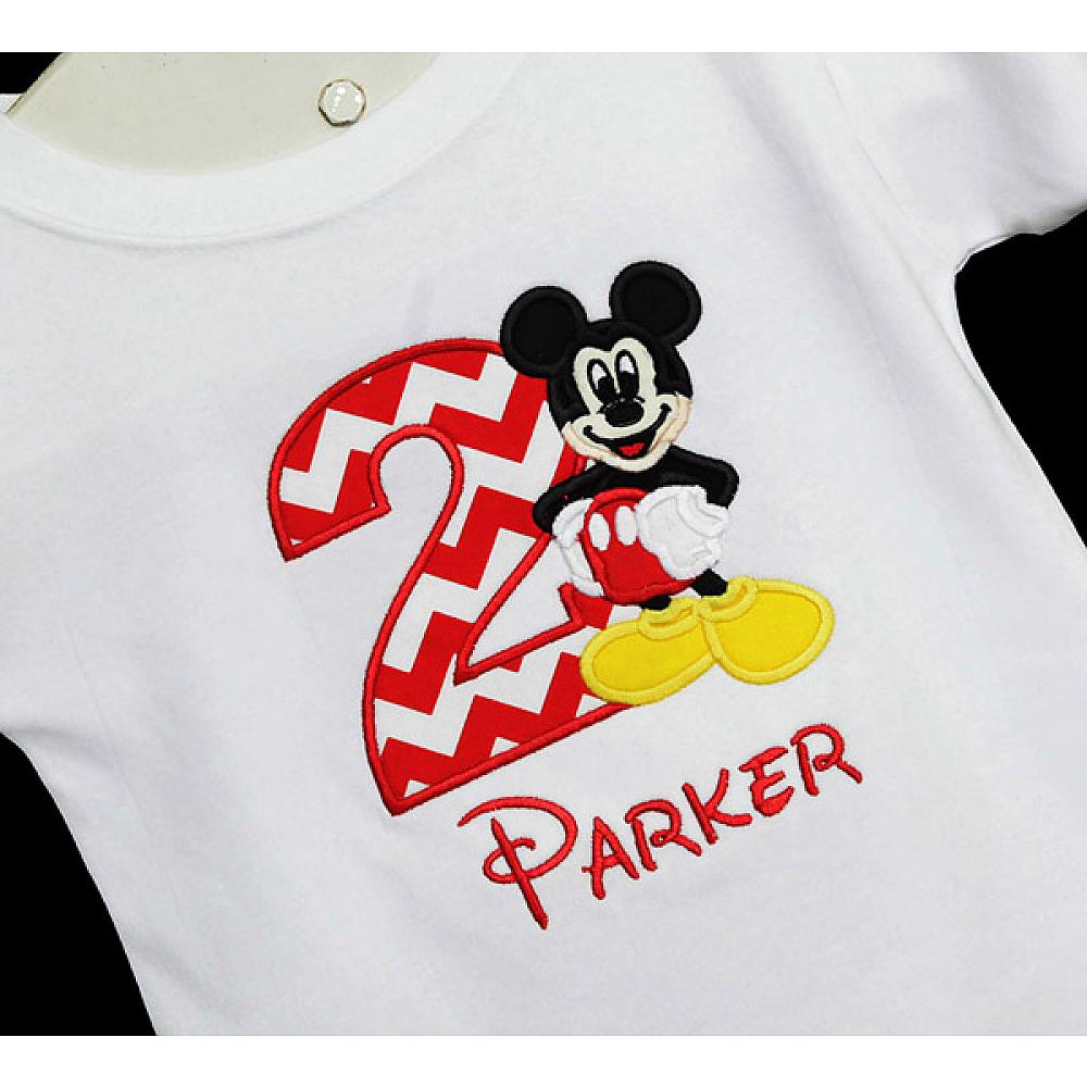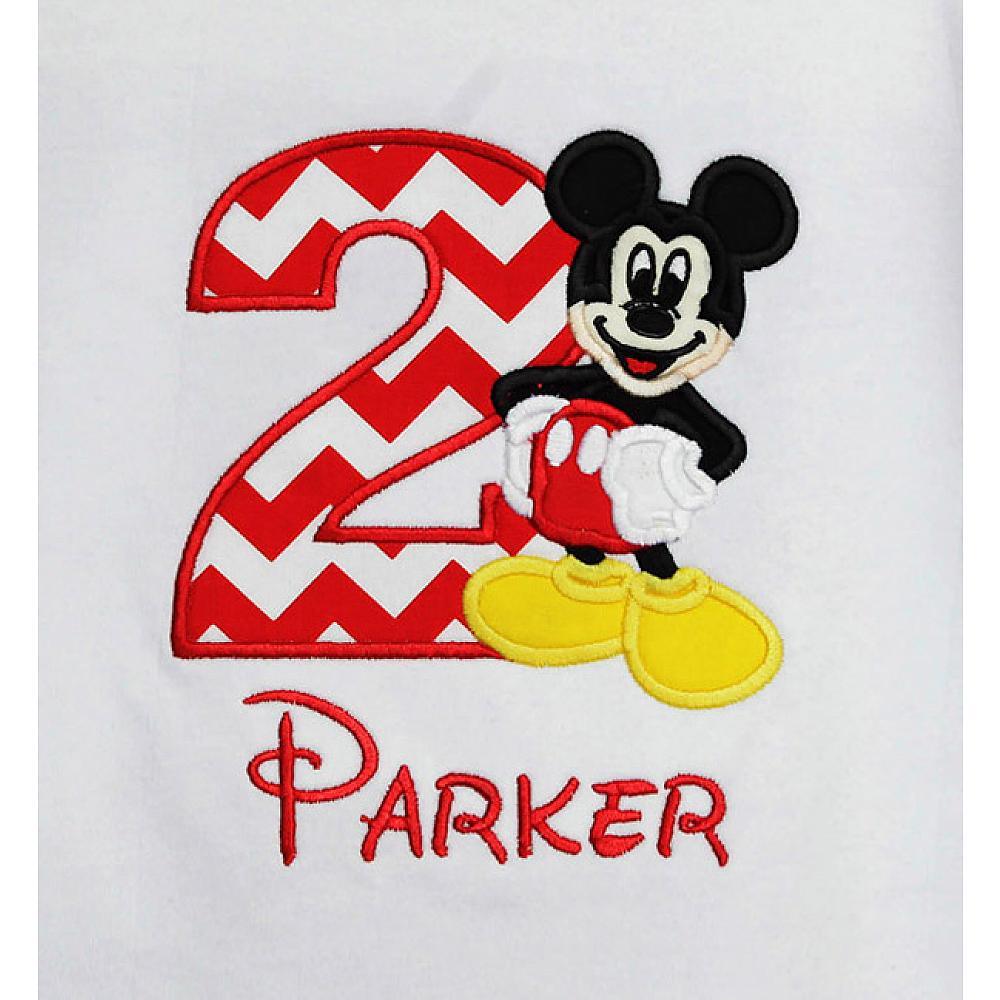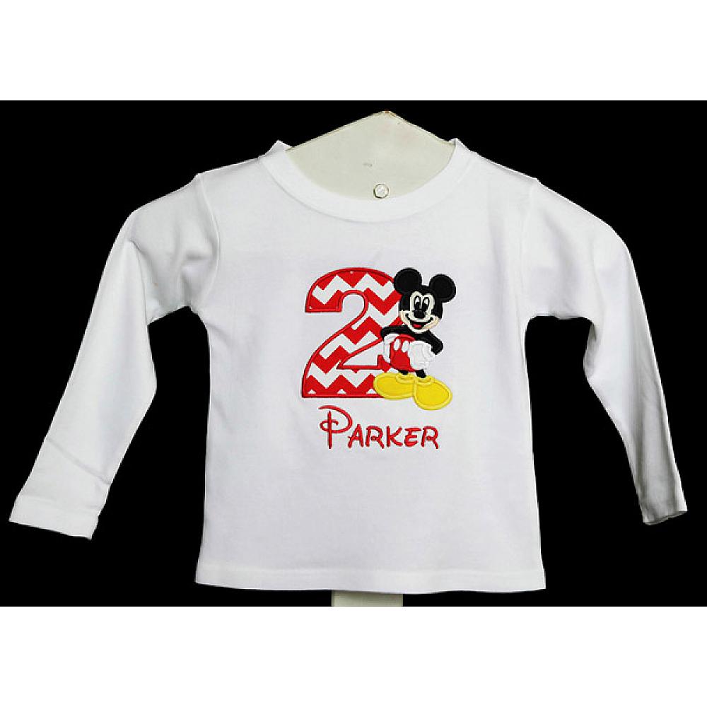 Personalized full Mickey Mouse birthday shirt or onesie. Custom made to your specifications. You pick the fabric, font, and thread colors. Any Age. Add shorts, pants, a coordinating bib or diaper cover to complete the outfit.