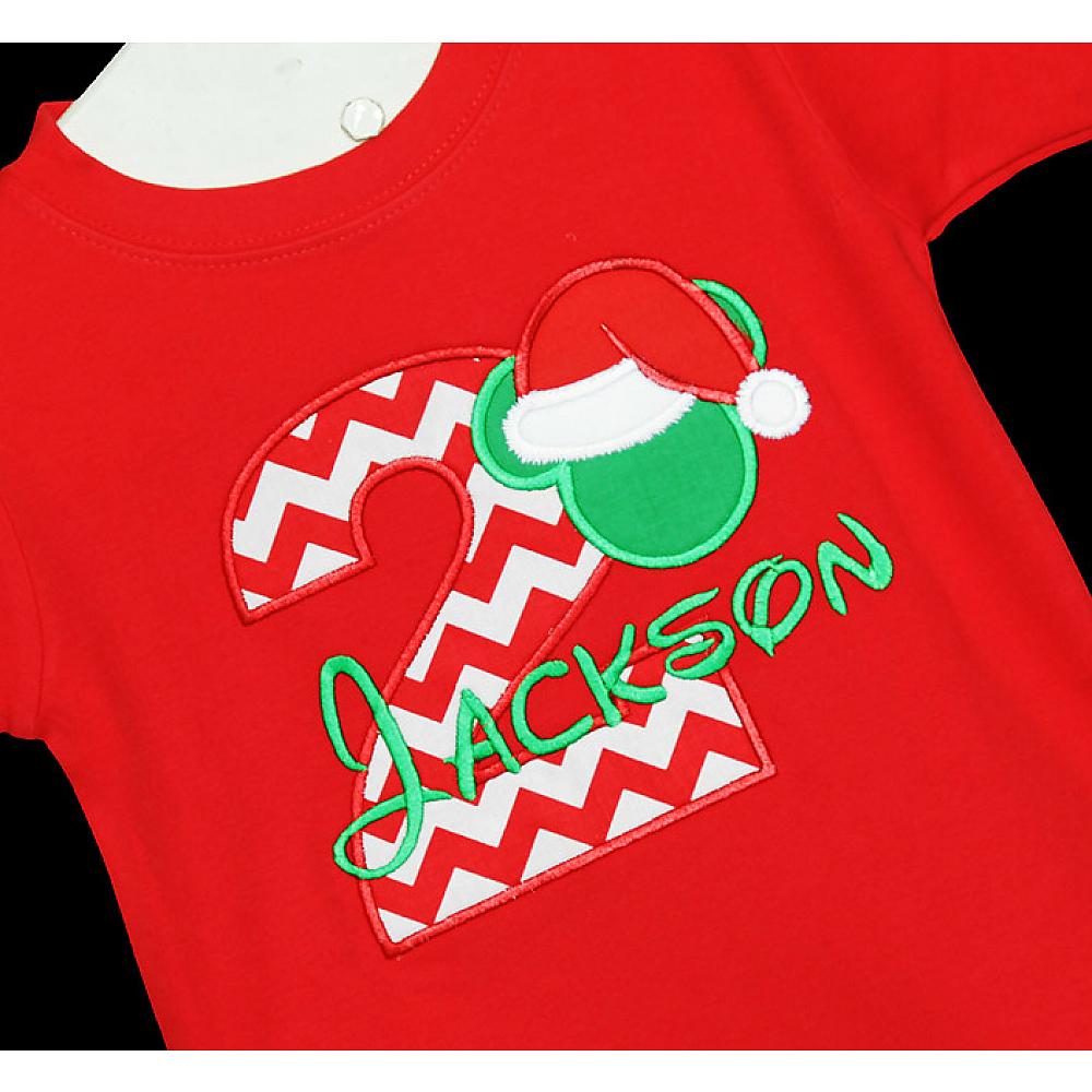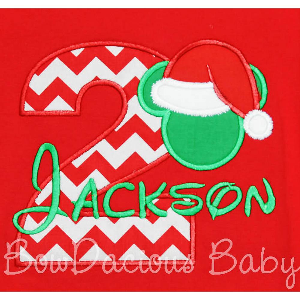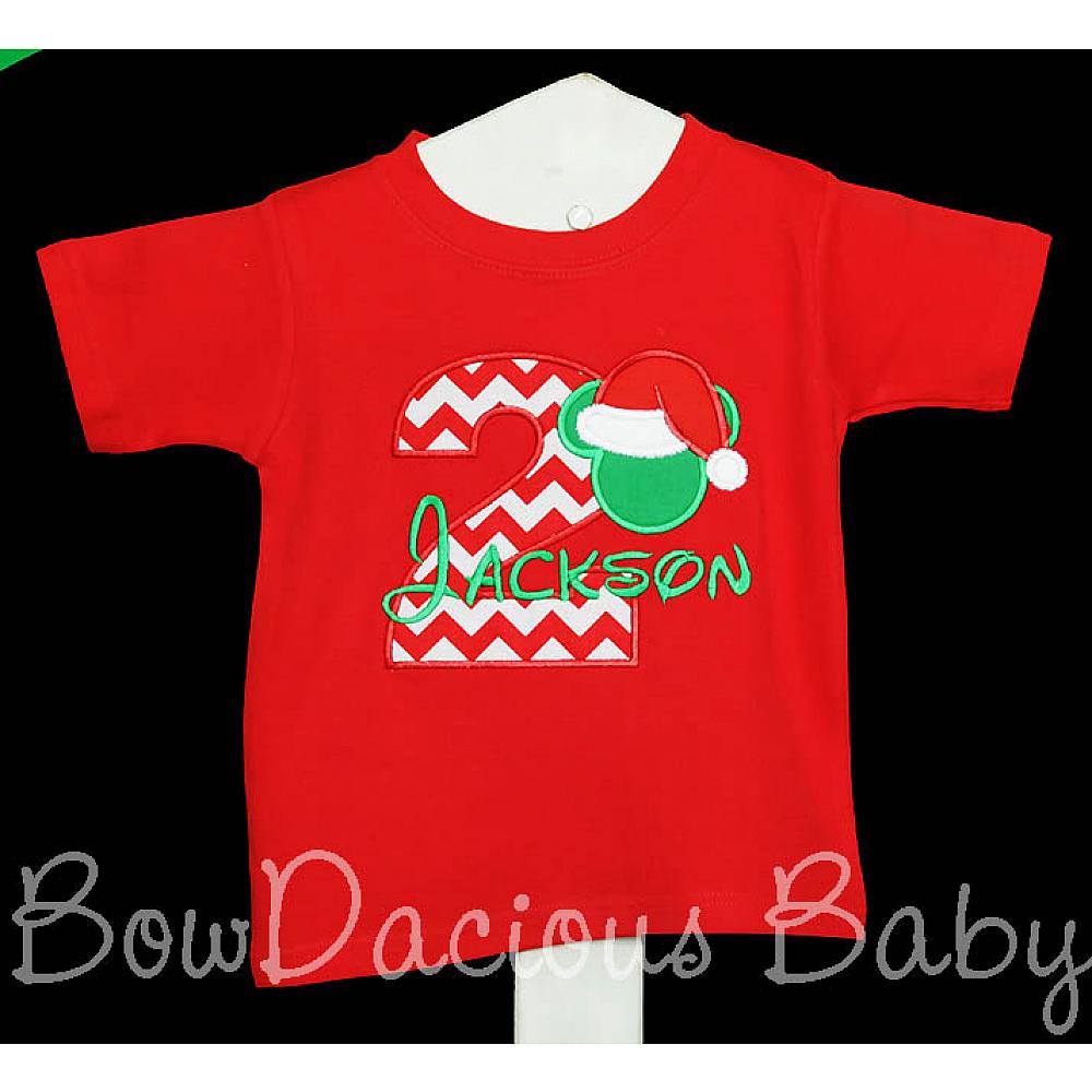 Disney Santa Mickey birthday shirt or onesie. Custom made to your specifications. You pick the fabric, font, and thread colors. Any Age. Add shorts, pants, a coordinating bib or diaper cover to complete the outfit.