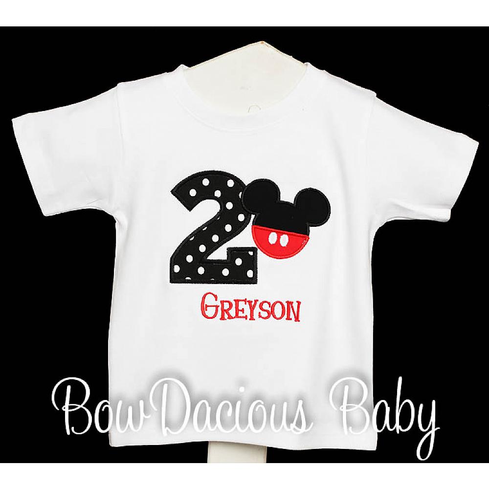 Personalized Mickey Mouse pants birthday shirt or onesie. Custom made to your specifications. You pick the fabric, font, and thread colors. Any Age. Add shorts, pants, a coordinating bib or diaper cover to complete the outfit.