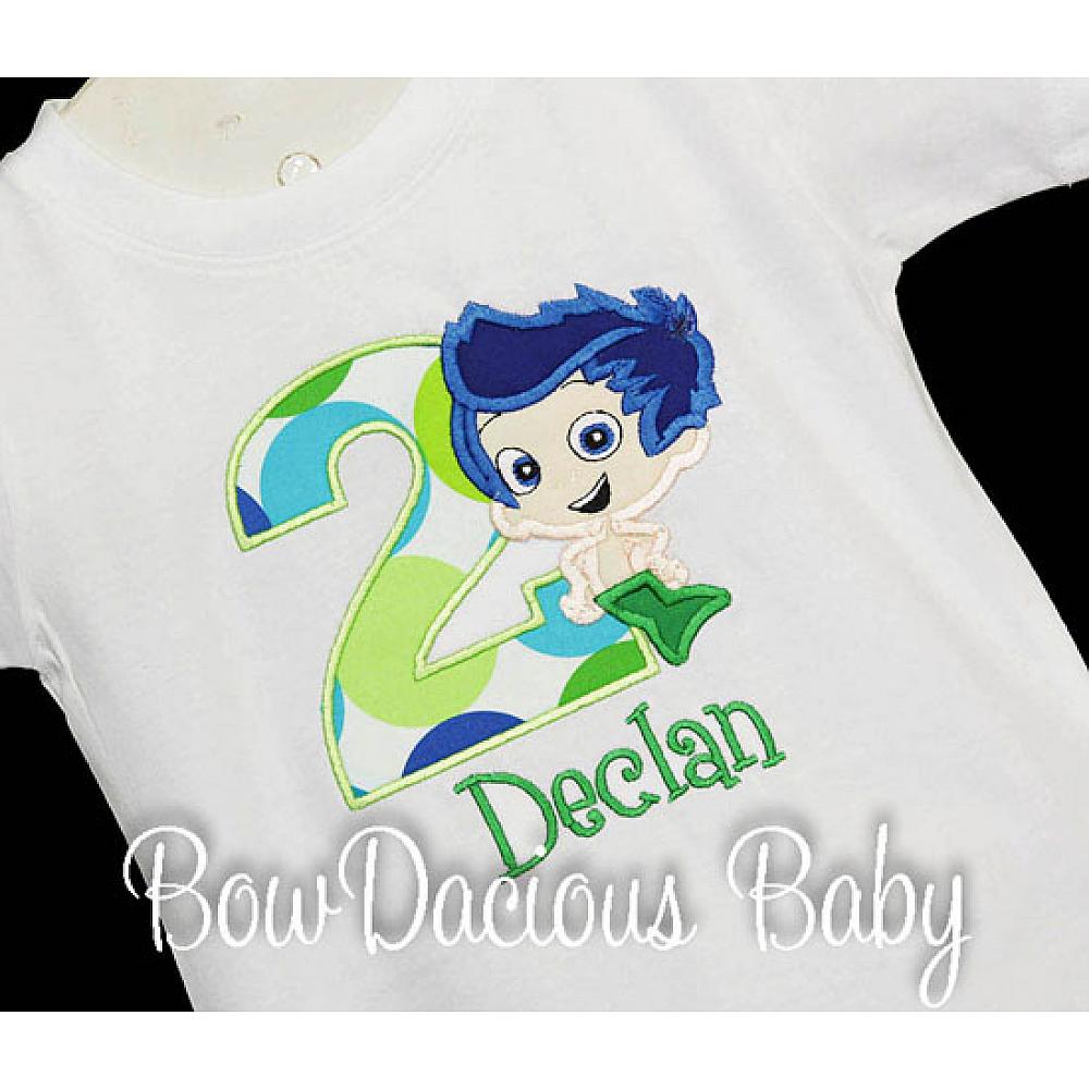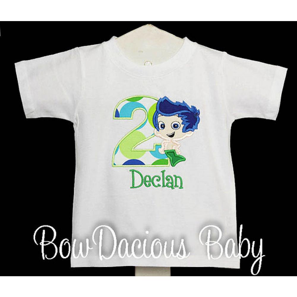 Personalized Gil Bubble Guppies birthday shirt or onesie. CCustom made to your specifications. You pick the fabric, font, and thread colors. Any Age. Add shorts, pants, a coordinating bib or diaper cover to complete the outfit.