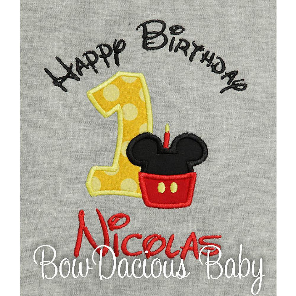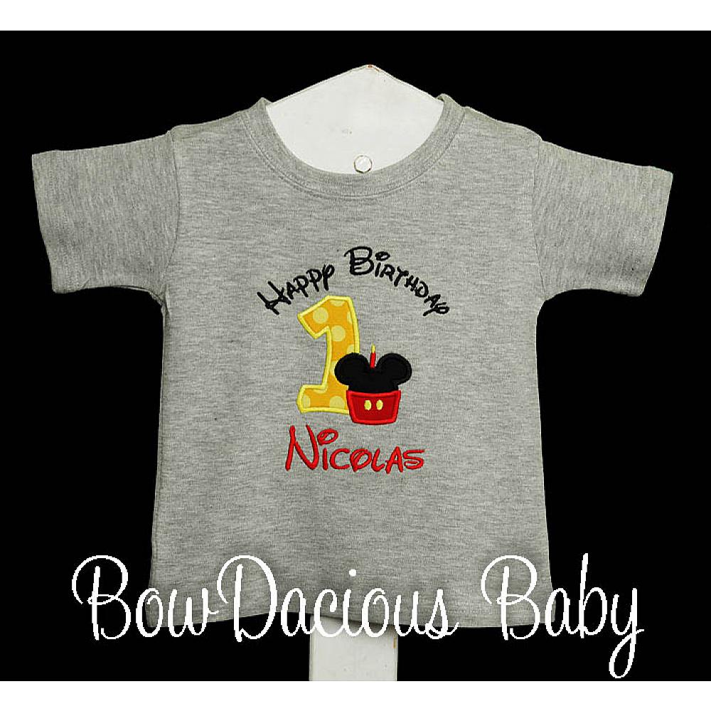 Birthday Boy Mickey Mouse birthday number shirt or onesie. Custom made to your specifications. You pick the fabric, font, and thread colors. Any Age. Add shorts, pants, a coordinating bib or diaper cover to complete the outfit.