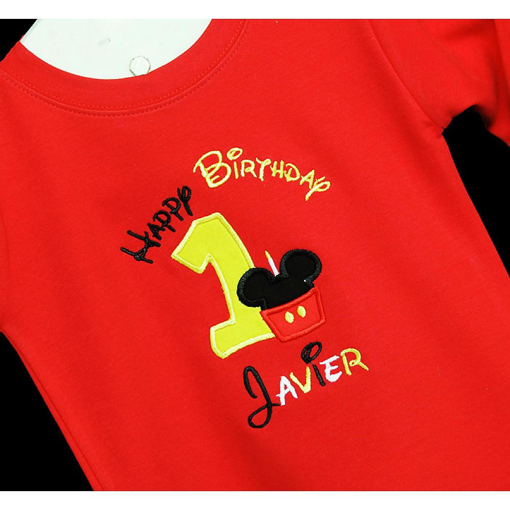 Birthday Boy Mickey Mouse birthday number shirt or onesie. Custom made to your specifications. You pick the fabric, font, and thread colors. Any Age. Add shorts, pants, a coordinating bib or diaper cover to complete the outfit.