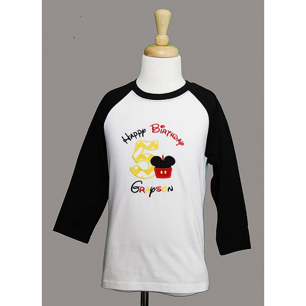 Raglan Mickey Mouse Birthday Shirt, Cupcake Mickey Birthday Shirt or Onesie, Custom, Any Age