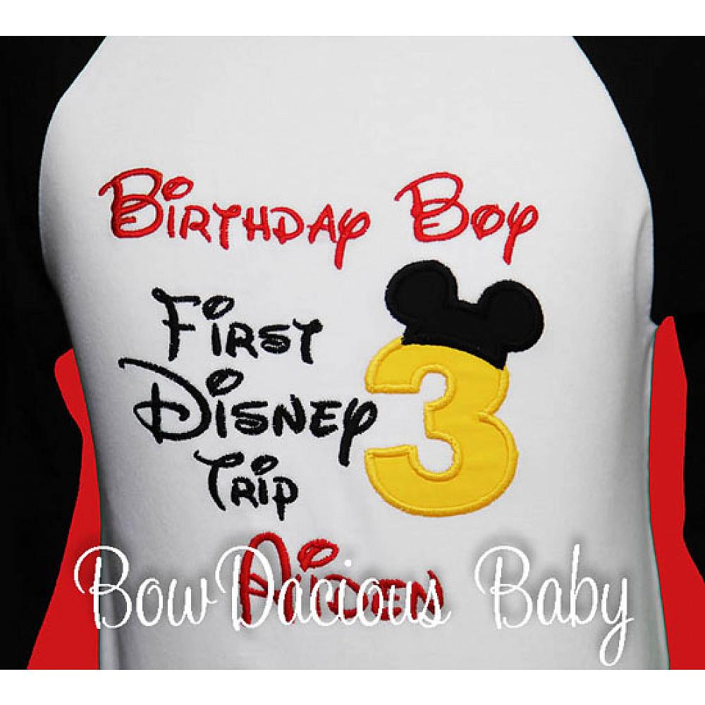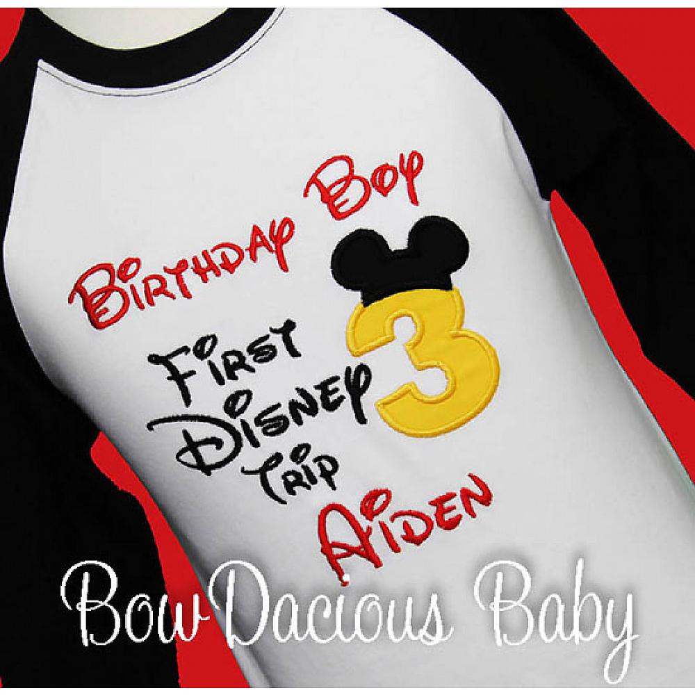 Personalized Birthday Boy, My First Disney Trip Shirt. Custom made to your specifications. You pick the fabric, font, and thread colors. Any Age. Add shorts, pants, a coordinating bib or diaper cover to complete the outfit.