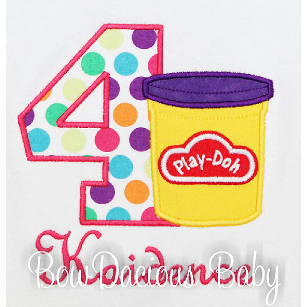 Personalized Playdoh birthday shirt or onesie. Custom made to your specifications. You pick the fabric, font, and thread colors. Any Age. Add shorts, pants, a coordinating bib or diaper cover to complete the outfit.