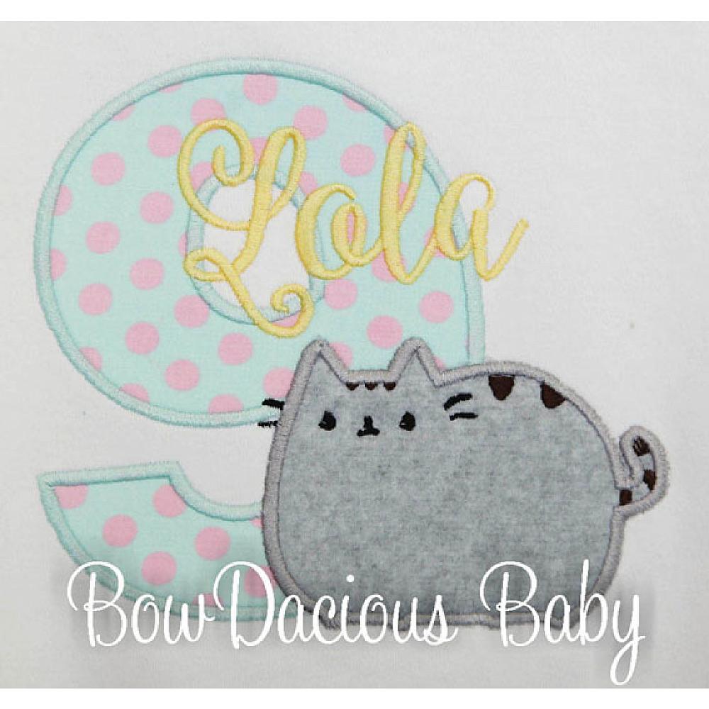 Personalized Pusheen Birthday shirt or onesie. Custom made to your specifications. You pick the fabric, font, and thread colors. Any Age. Add shorts, pants, a coordinating bib or diaper cover to complete the outfit.