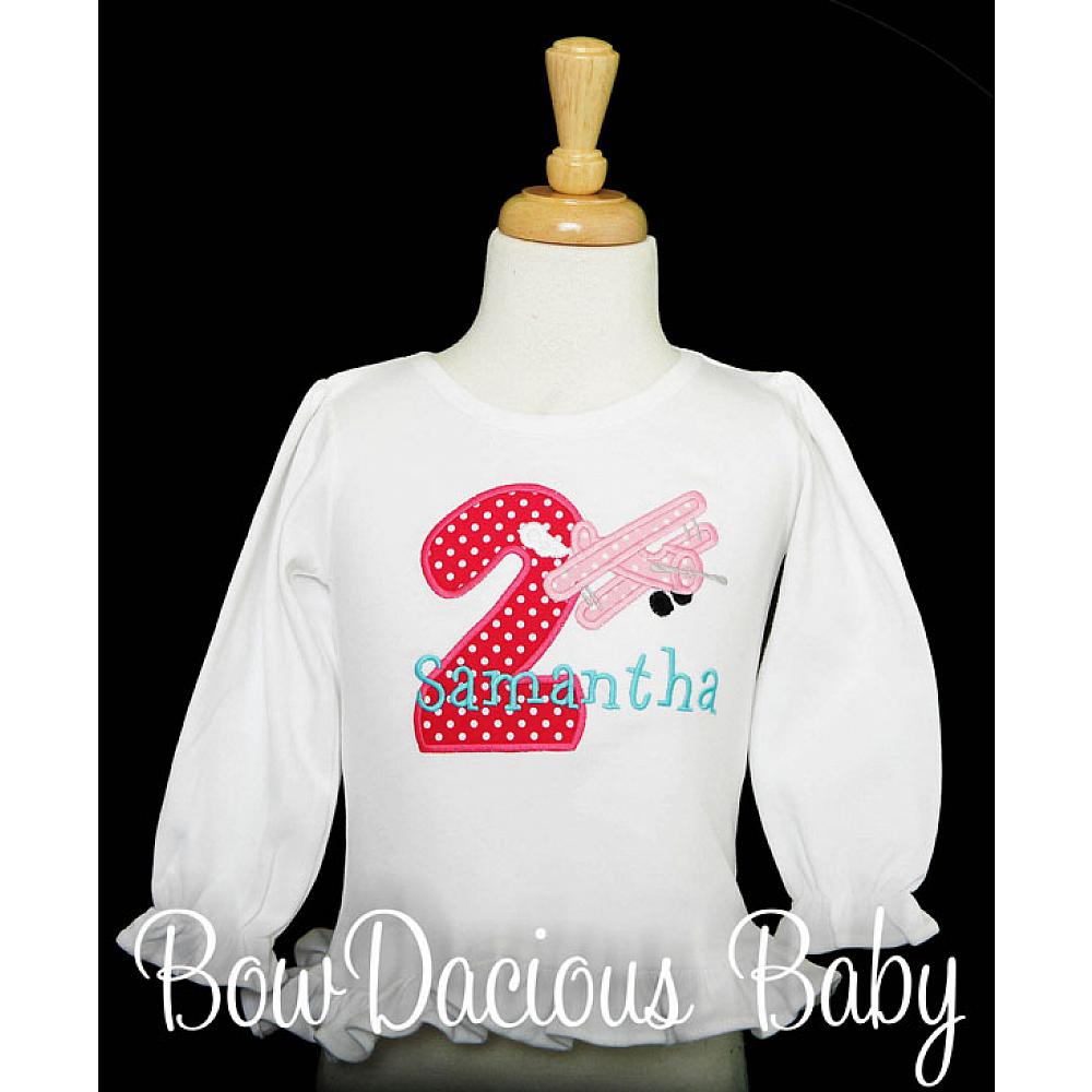 Personalized biplane birthday shirt or onesie. Custom made to your specifications. You pick the fabric, font, and thread colors. Any Age. Add shorts, pants, a coordinating bib or diaper cover to complete the outfit.