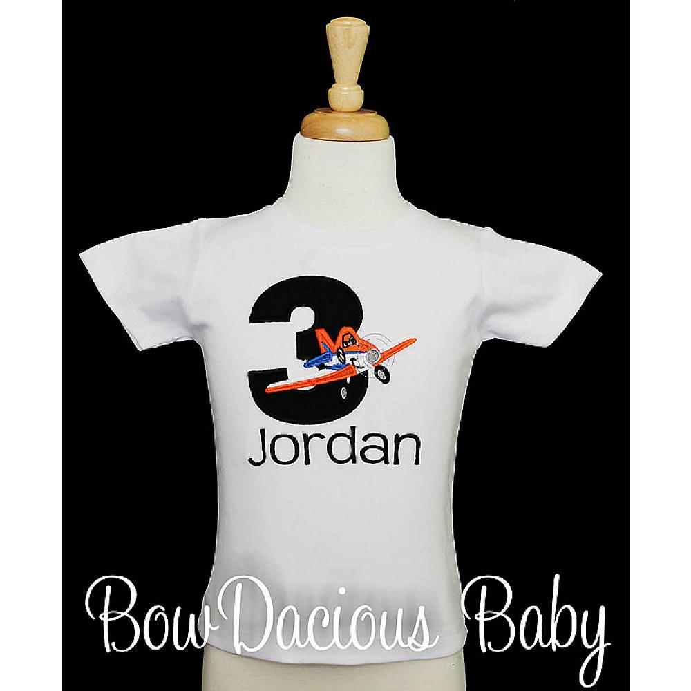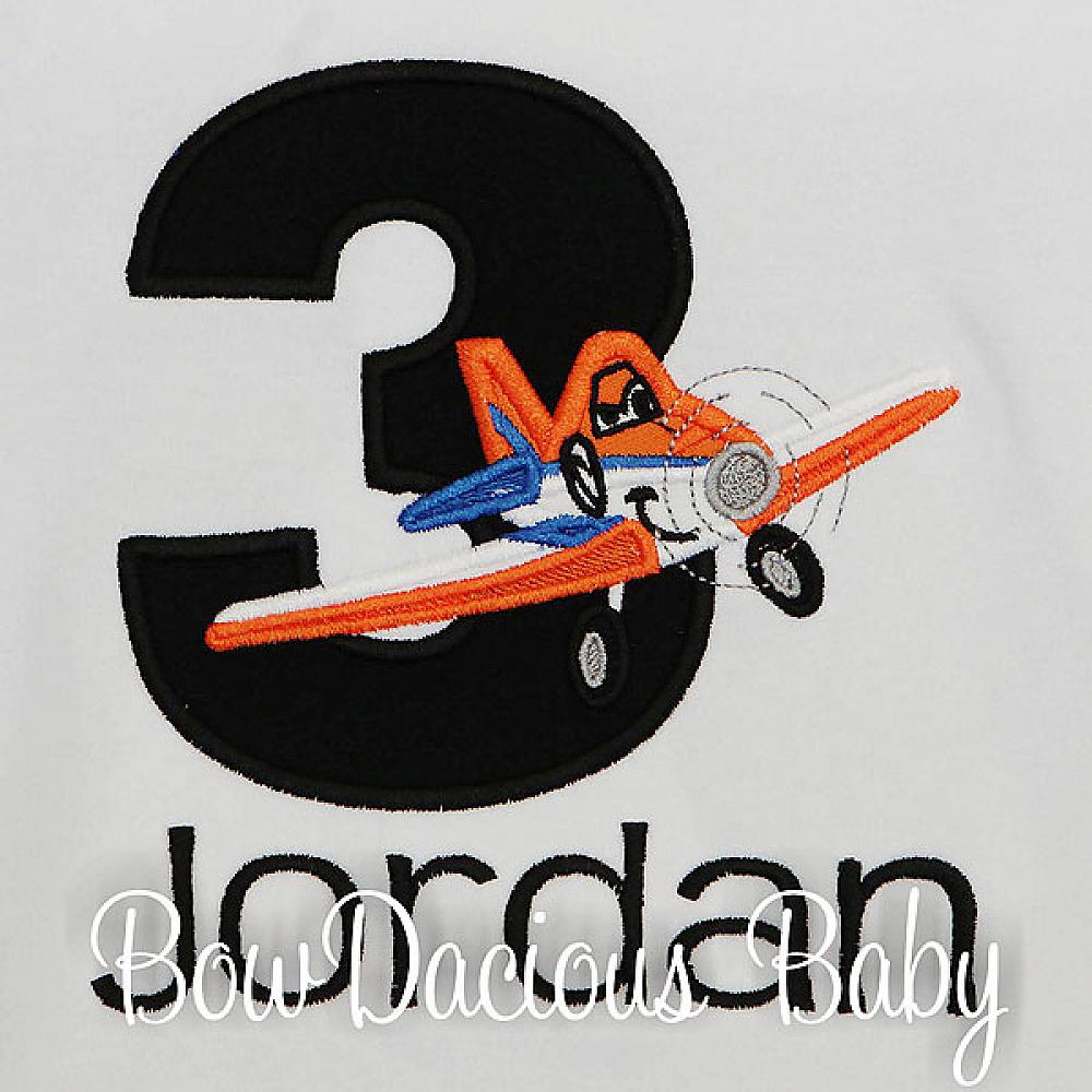 Personalized Dusty Planes birthday shirt or onesie. Custom made to your specifications. You pick the fabric, font, and thread colors. Add shorts, pants, a coordinating bib or diaper cover to complete the outfit.