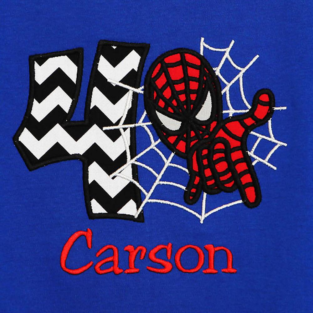 Personalized Spiderman birthday shirt or onesie. Custom made to your specifications. You pick the fabric, font, and thread colors. Add shorts, pants, a coordinating bib or diaper cover to complete the outfit.