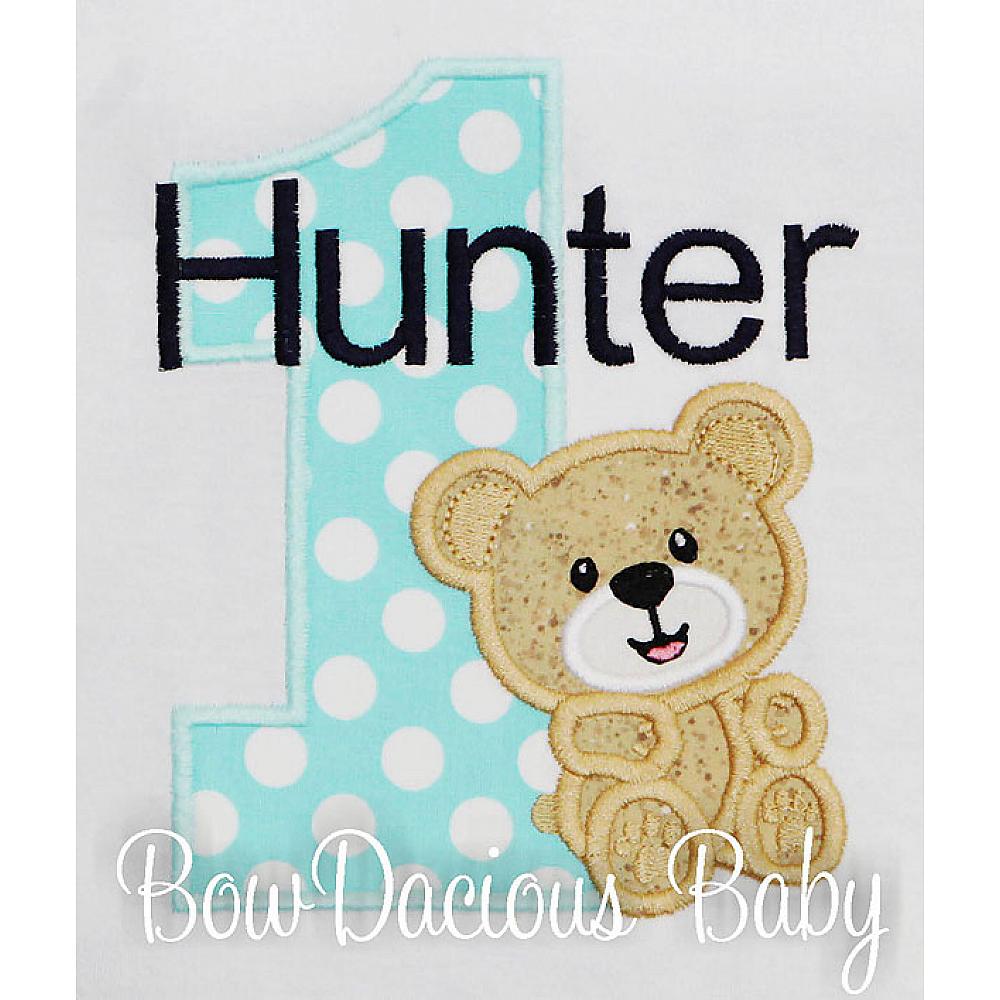 Personalized Teddy Bear birthday shirt or onesie. Custom made to your specifications. You pick the fabric, font, and thread colors. Add shorts, pants, a coordinating bib or diaper cover to complete the outfit.
