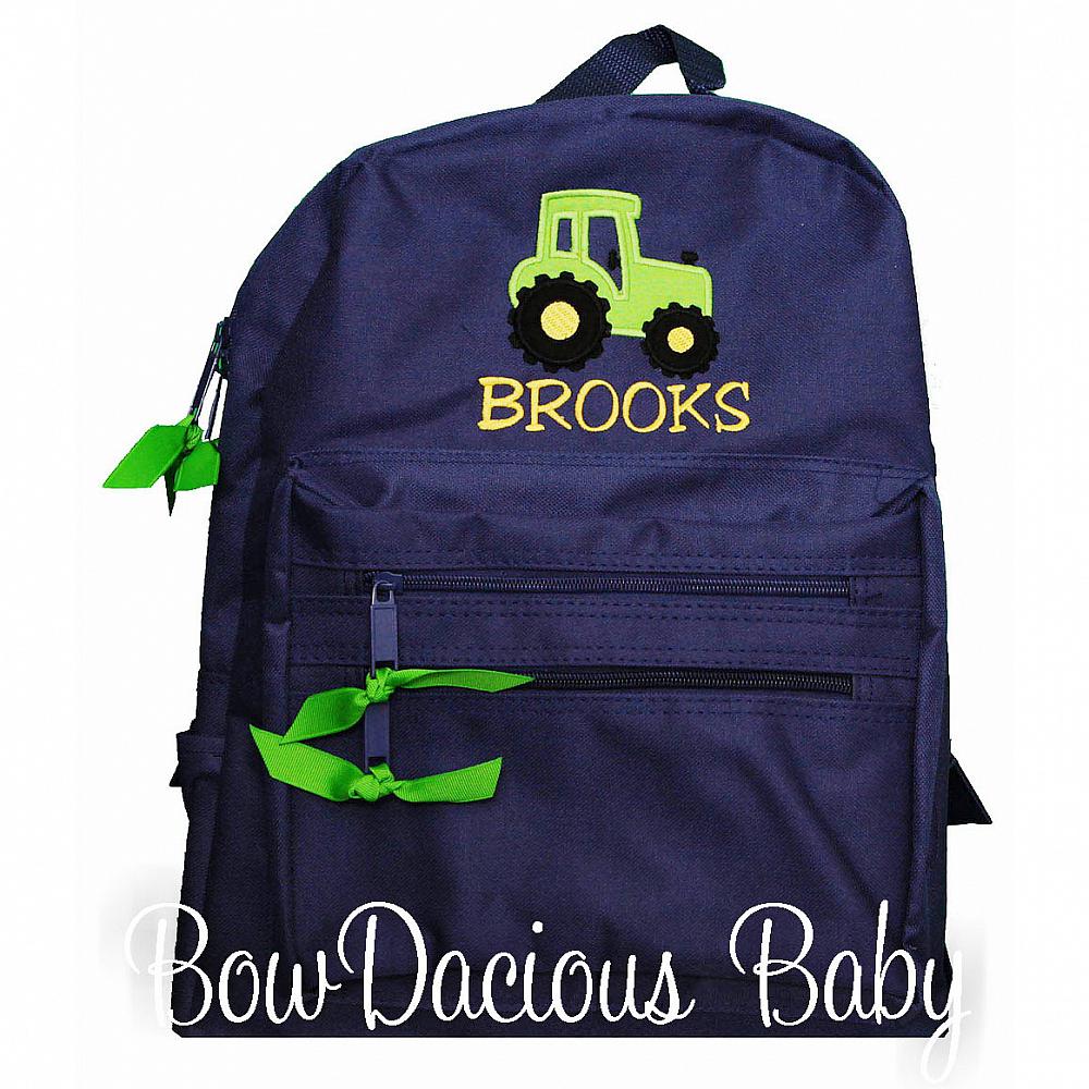 Personalized kids Tractor backpack. Custom made to your specifications. You pick the backpack color fabric, font, and thread colors.
