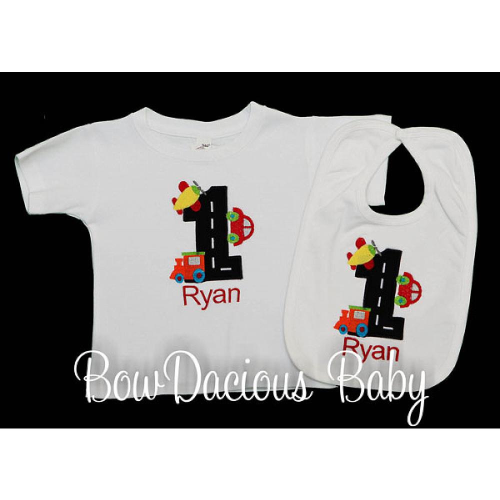 Transportation Vehicles Birthday Shirt or Onesie and Bib, Custom, Any Age