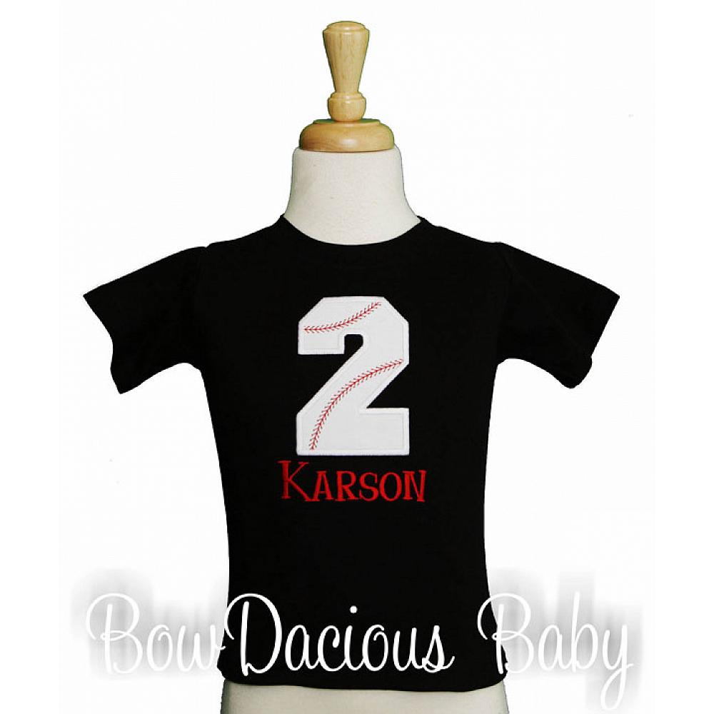 Personalized baseball birthday shirt or onesie. Custom made to your specifications. You pick the fabric, font, and thread colors. Any Age. Add shorts, pants, a coordinating bib or diaper cover to complete the outfit.