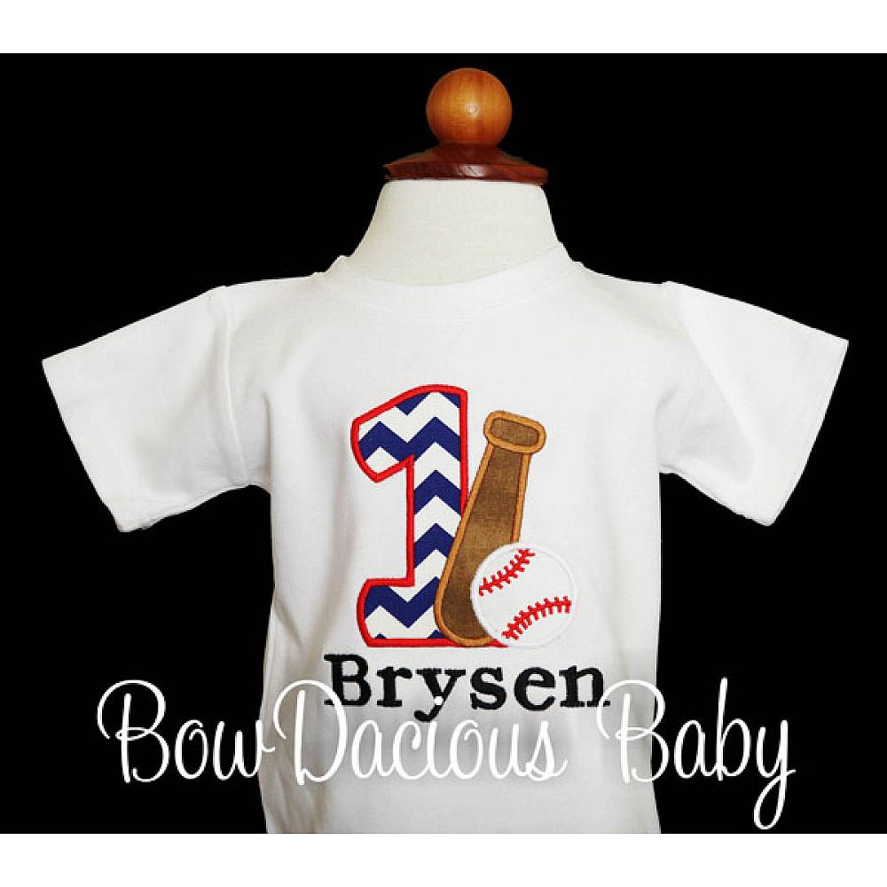 Personalized baseball birthday shirt or onesie. Custom made to your specifications. You pick the fabric, font, and thread colors. Any Age. Add shorts, pants, a coordinating bib or diaper cover to complete the outfit.