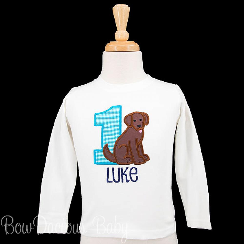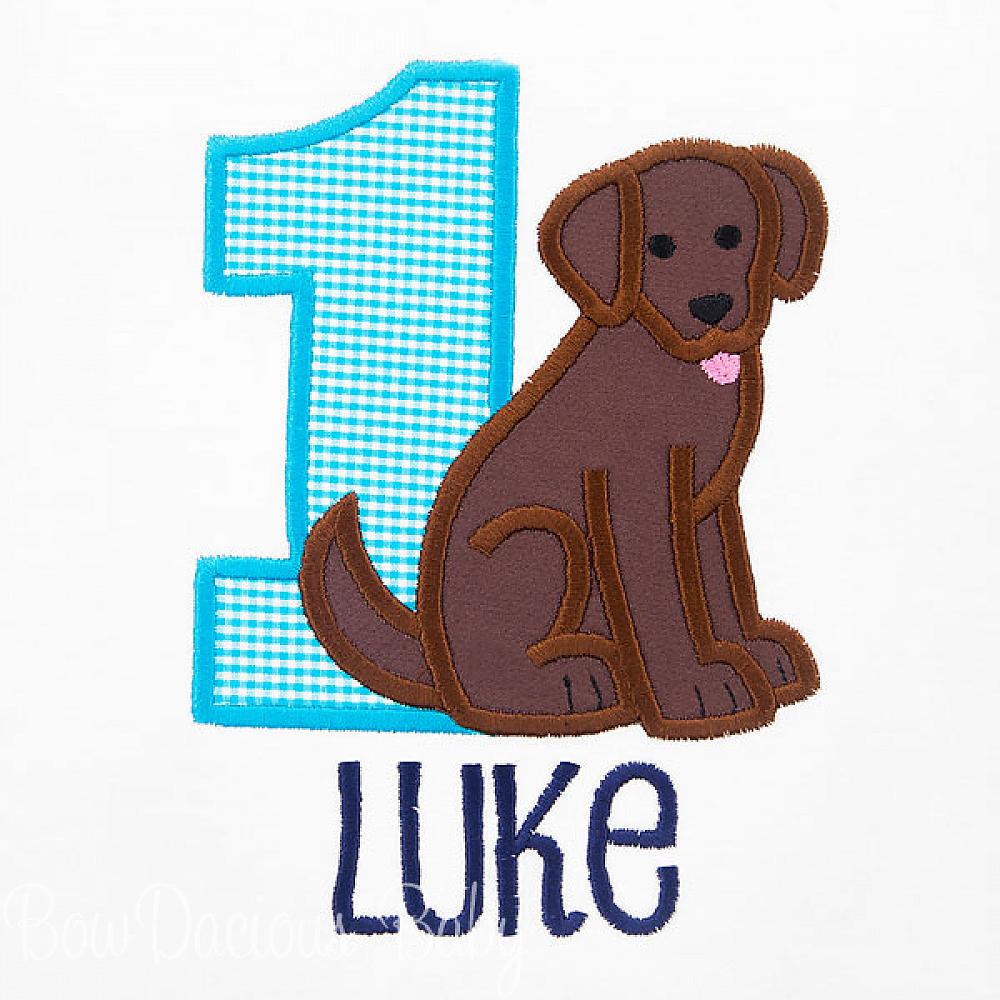 Personalized Chocolate Lab birthday shirt or onesie. Custom made to your specifications. You pick the fabric, font, and thread colors. Any Age. Add shorts, pants, a coordinating bib or diaper cover to complete the outfit.