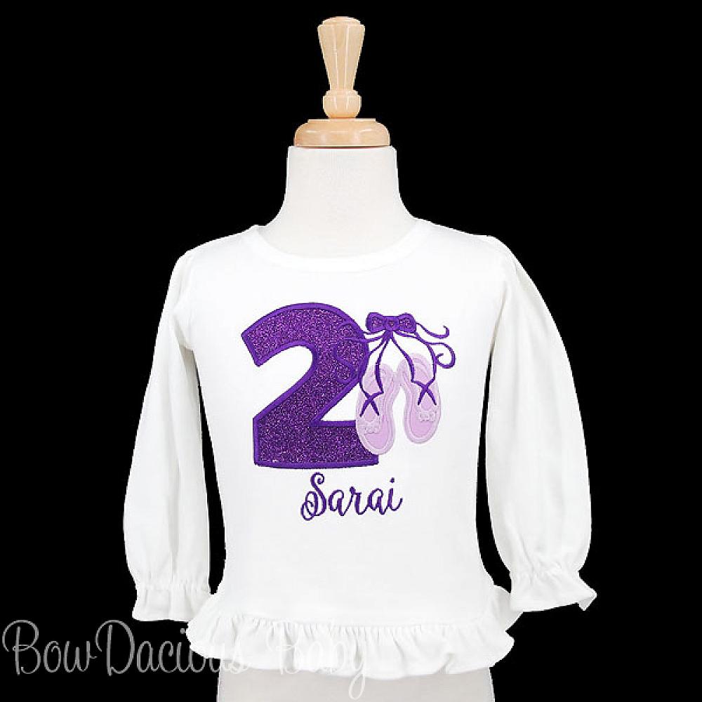 Personalized Ballet birthday shirt or onesie. Custom made to your specifications. You pick the fabric, font, and thread colors. Any Age. Add shorts, pants, a coordinating bib or diaper cover to complete the outfit.