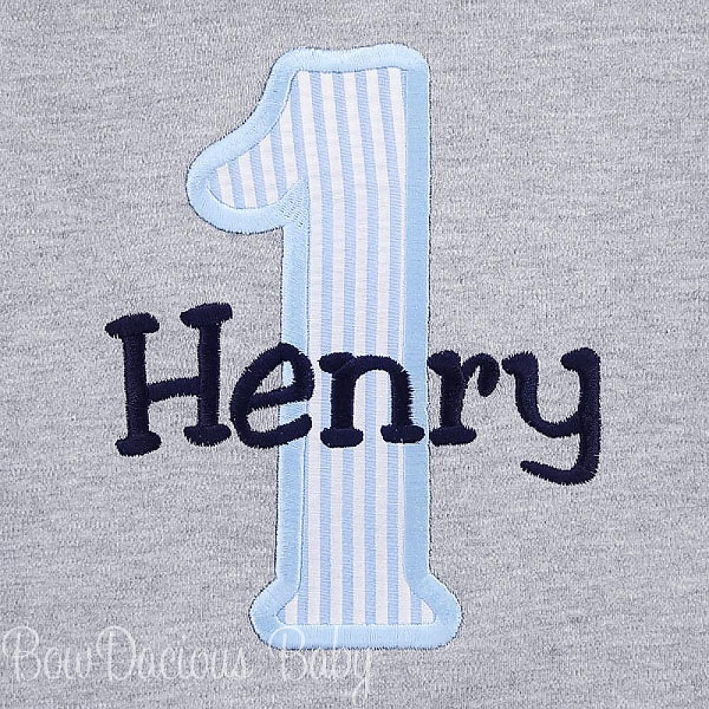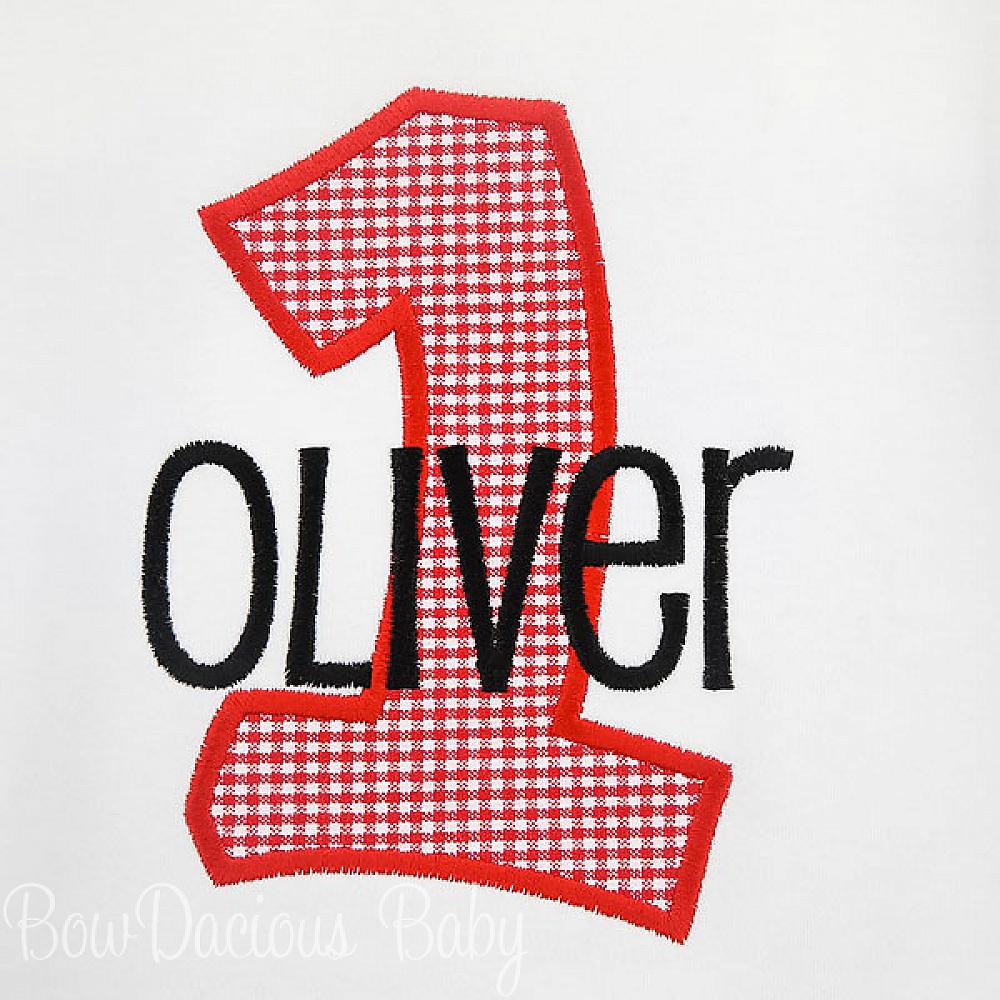 Personalized name and age boys first birthday shirt or onesie. Custom made to your specifications. You pick the fabric, font, and thread colors. Add shorts, pants, a coordinating bib or diaper cover to complete the outfit.