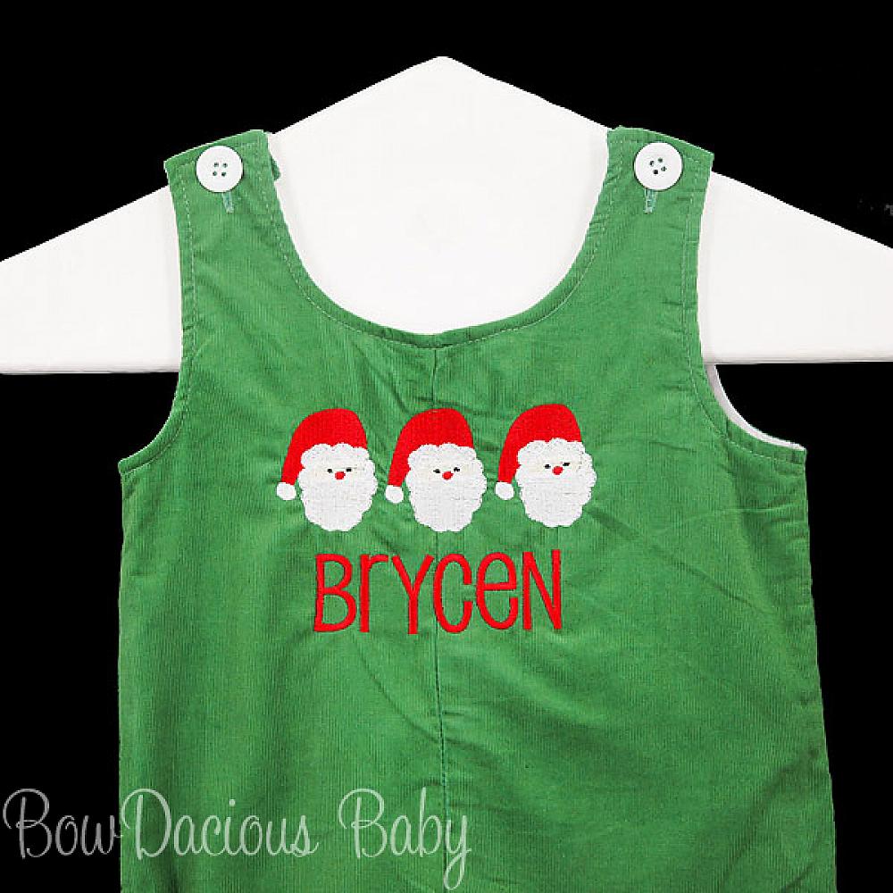Personalized Santa Christmas longall. Custom made to your specifications. You pick the fabric, font, and thread colors. Add a coordinating bib to complete the outfit.