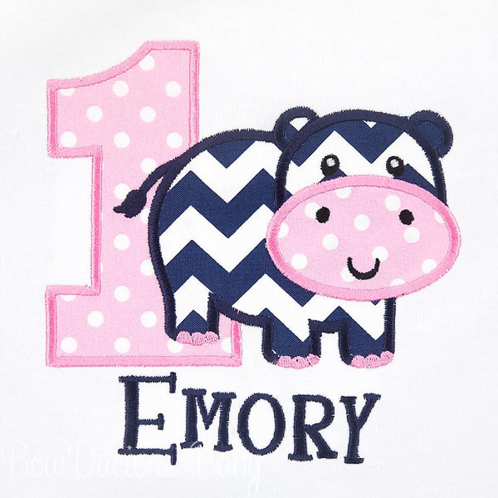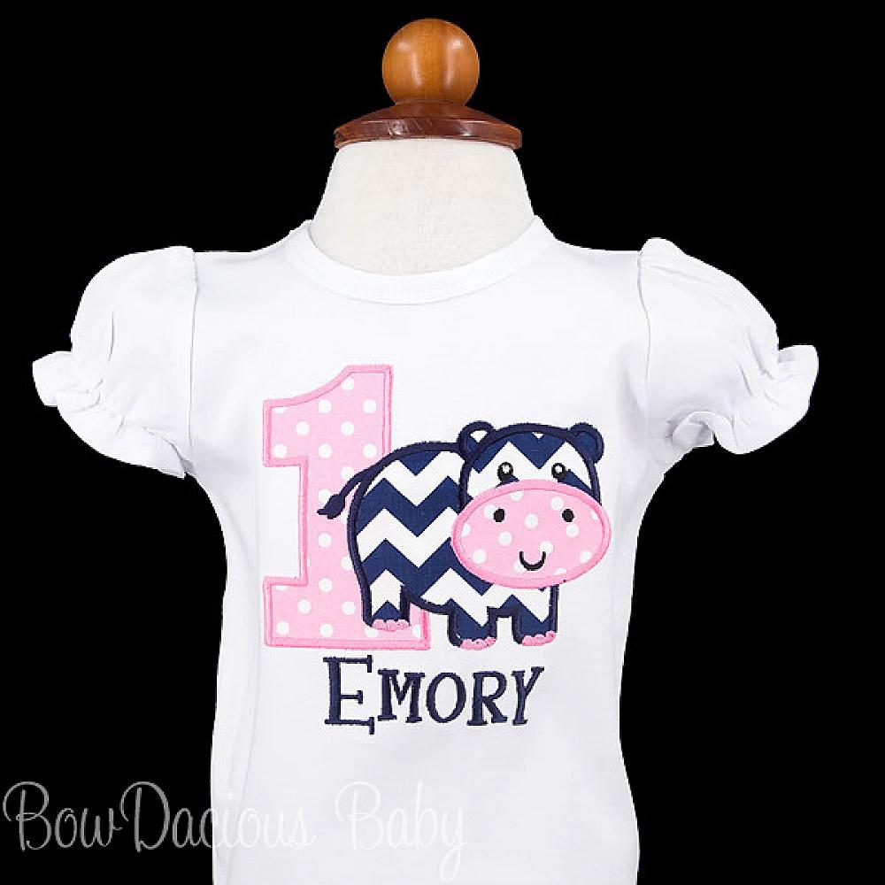 Personalized hippo birthday shirt or onesie. Custom made to your specifications. You pick the fabric, font, and thread colors. Any Age. Add shorts, pants, a coordinating bib or diaper cover to complete the outfit.